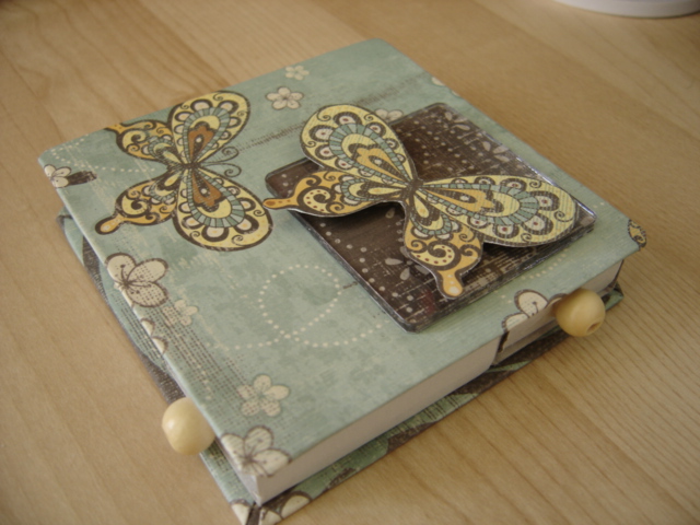 Tein vaihtoa varten alla olevan kirjasen, jossa siis sisällä on tulitikkurasiat. Ja rasioissa on jotain pientä kivaa paketin saajalle. Täältä löytyy ohjetta kirjasen tekoon. Alla kirjanen suljettuna...